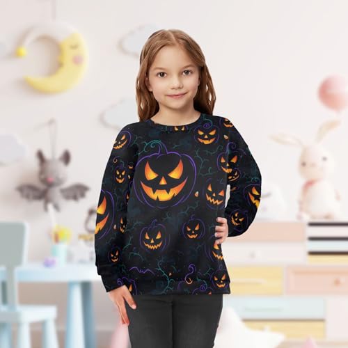 JUNZAN Halloween Pumpkin Goth Little Girls Sweatshirts Hoodies Crewneck Hoodies for Girls Athletic 4T 5