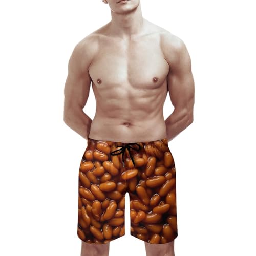 HOT ! Baked Beans Food Mens Swim Trunks Beach Swimming Shorts with Pockets and Mesh Lining