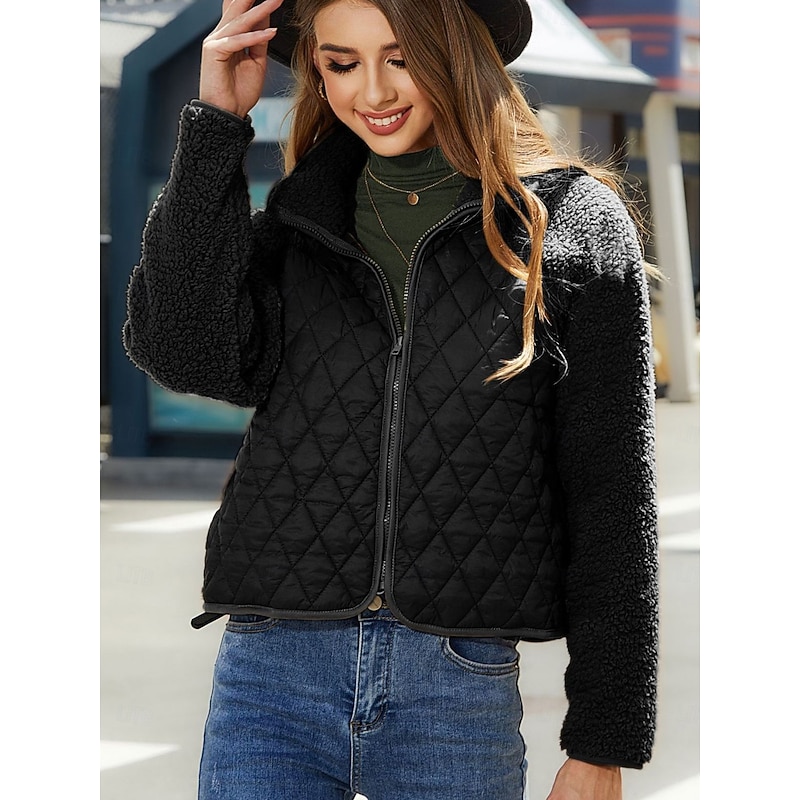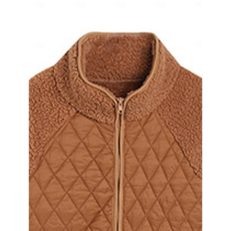 Highlights [Fabric] This fleece jacket is expertly crafted with a blend of polyester and soft Sherpa fleece, providing a perfect balance of warmth and style for fall and winter. The quilted fabric body not only ensures cozy comfort but also introduces a touch of classic elegance, while the sleeves and collar, made from plush Sherpa fleece, offer extra warmth and a delightful contrasting texture. [Fit] Designed for a loose fit, this jacket allows for ease of movement and versatility in styling, making it an ideal addition to any wardrobe. Its relaxed silhouette is perfect for layering over casual outfits or work attire without compromising on comfort or style. [Design Highlights] The jacket features a convenient front zipper closure, making it easy to put on and take off. The stand collar adds a modern twist to its classic design, providing additional warmth to keep you snug on chilly days. The plain earthy tones of this piece make it a timeless addition to any wardrobe. [Occasions] Ideal for daily wear and work, this jacket's casual and modern style makes it perfect for various occasions. Whether you're heading to the office or enjoying a relaxed weekend, this versatile outerwear piece ensures you stay stylish and warm. [Size] Available in a range of sizes from S to XXL, this jacket caters to a wide array of body types, offering both style and comfort for everyone.