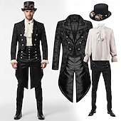 $114.99 - Set with Steampunk Tailcoat High Waisted Pants Top Hat with Goggles Retro Vintage Medieval Coat Jacket Outerwear Straight Leg Trousers Vampire Outfits Men's Cosplay Costume Masquerade Party Evening 2025. Shop for cheap Outfits online? Buy at lightinthebox.com on sale today!