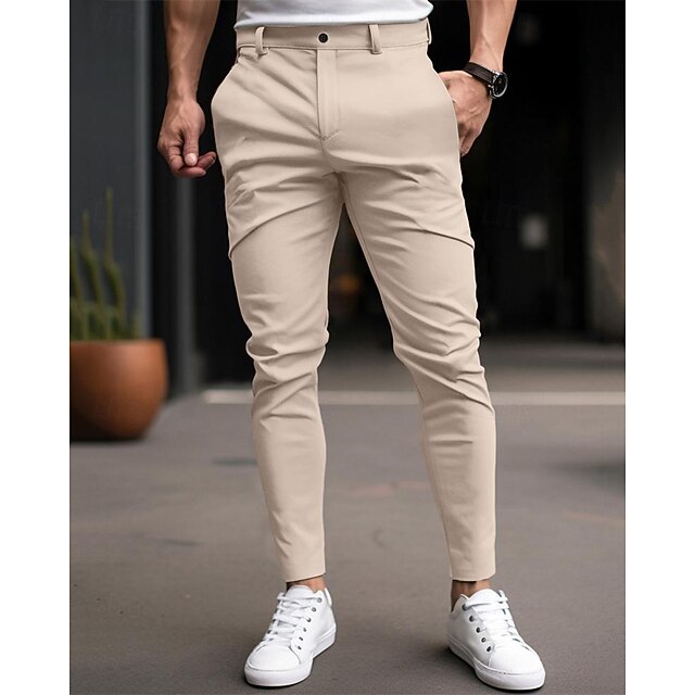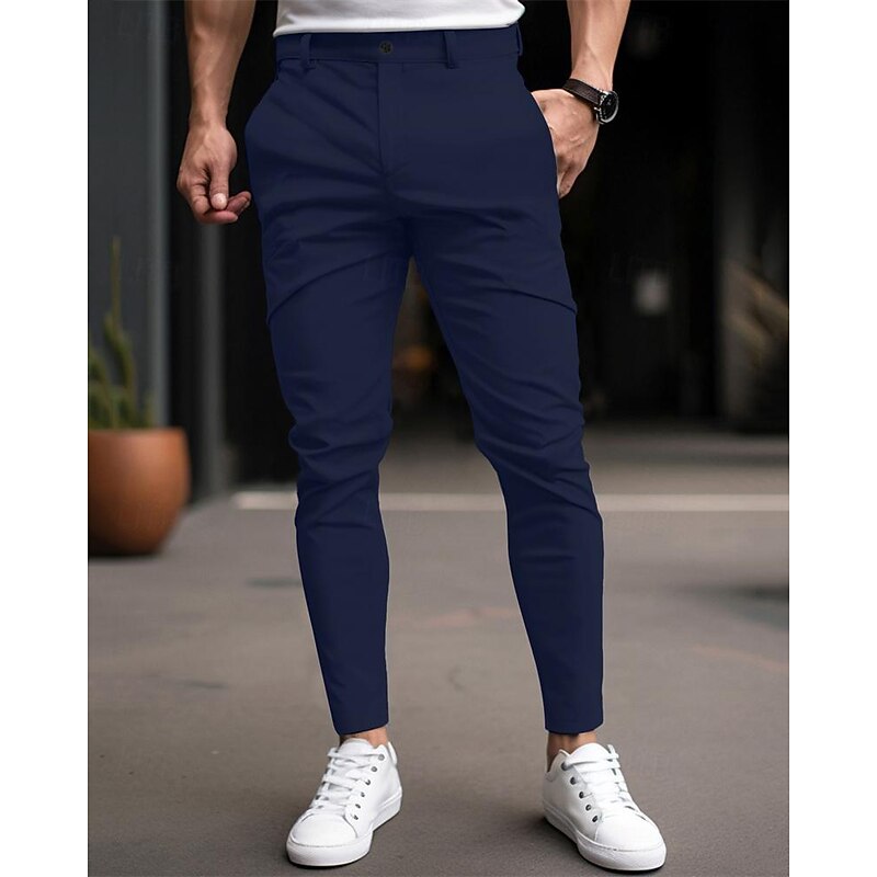 More information about Men's Graduation Trousers Chinos Chino Pants Buttons Pocket Plain Comfort Business Daily Classic Style Black Dark Blue Micro-elastic