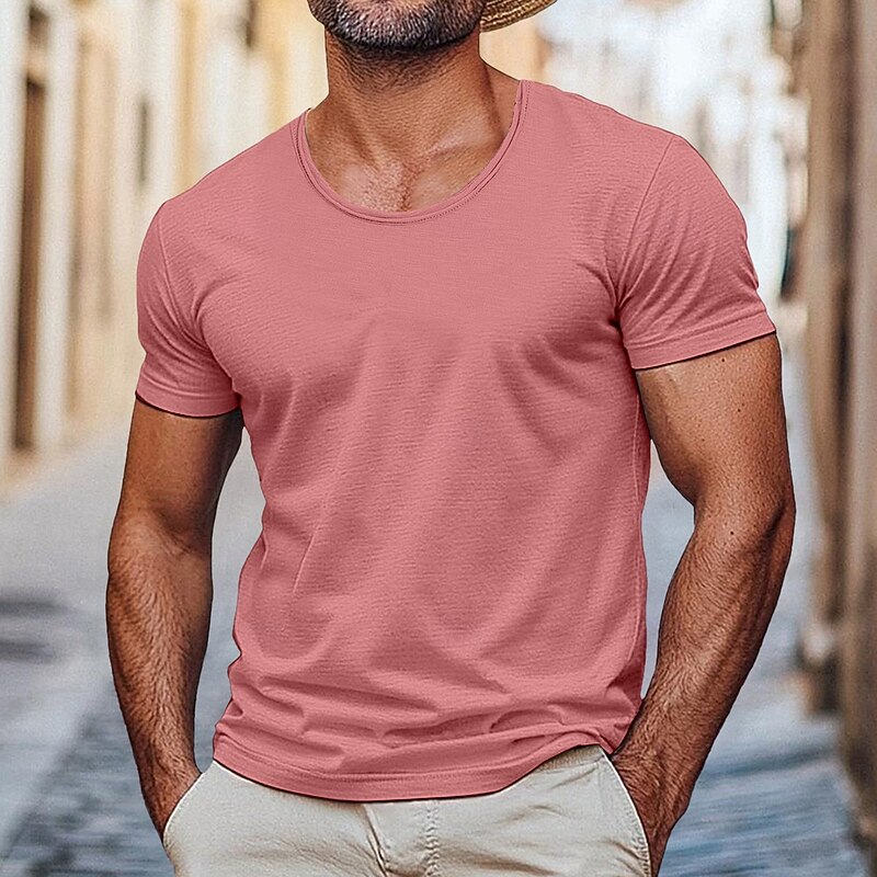HOT ! Men's T Shirt Moisture Wicking Shirts Short Sleeve V Neck Summer Spring Plain Retro Basic Casual V Neck Vintage Street Causal Casual Black White Pink Top Tee for Men