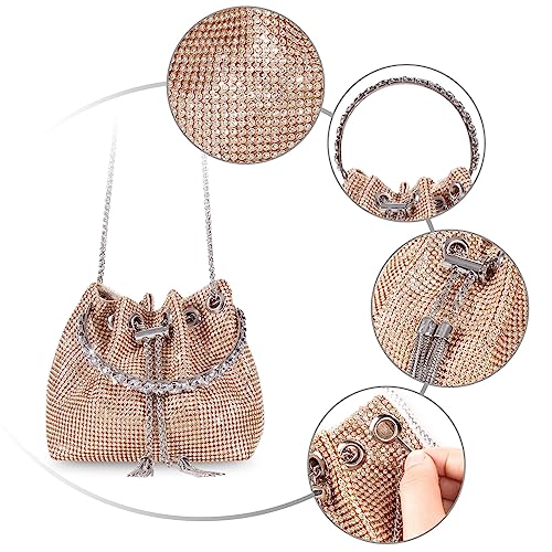 Desy & Feeci Bling Rhinestone Purse for Women, Glitter Clutch Handbag Bucket Evening Bag for Girls Wedding Party 6
