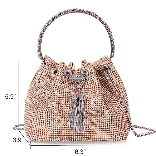 Desy & Feeci Bling Rhinestone Purse for Women, Glitter Clutch Handbag Bucket Evening Bag for Girls Wedding Party 5