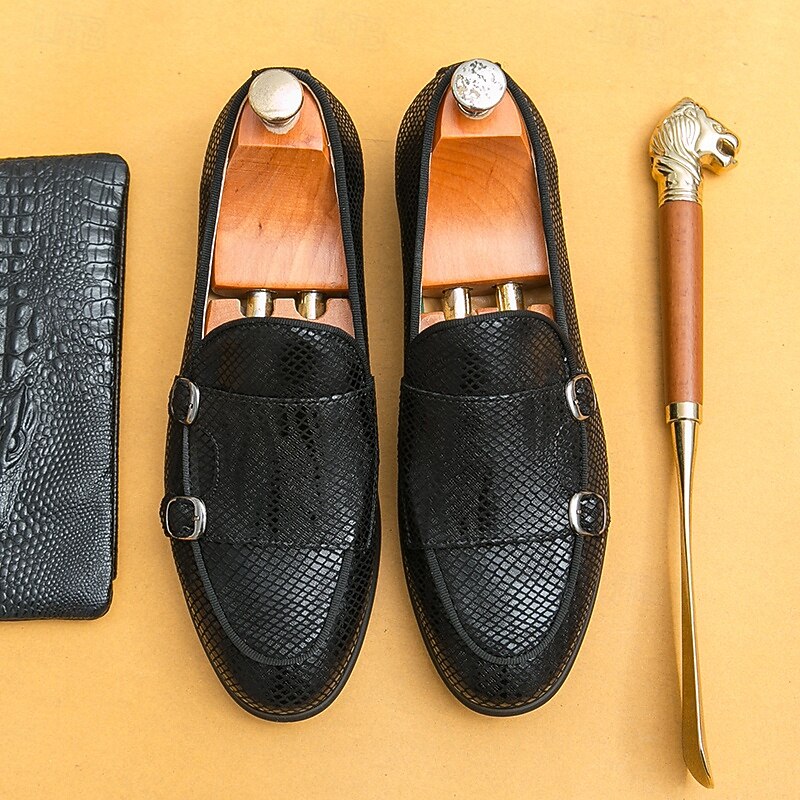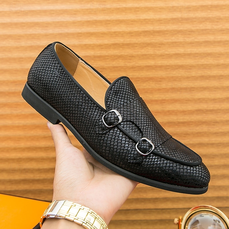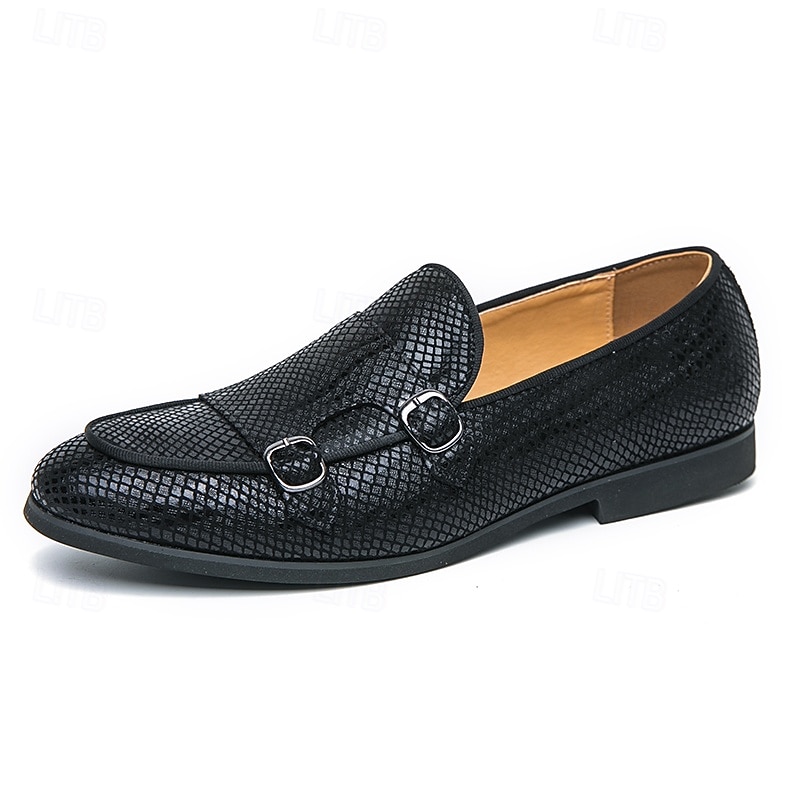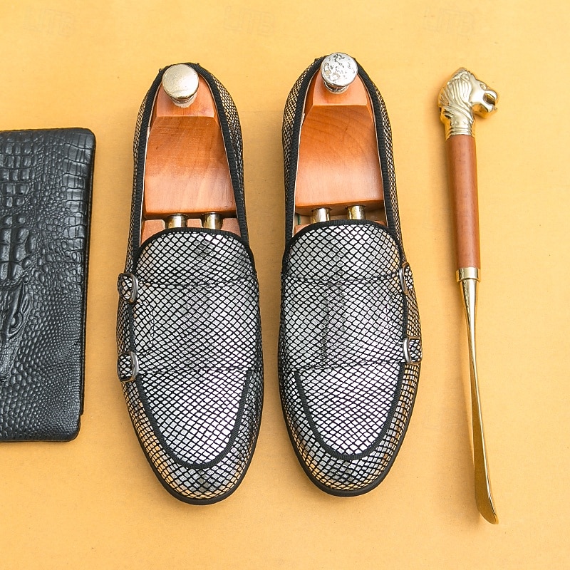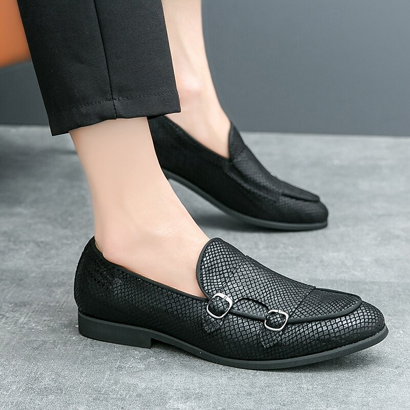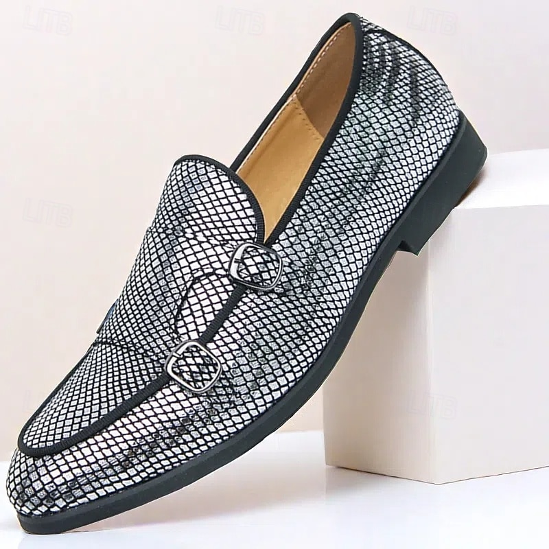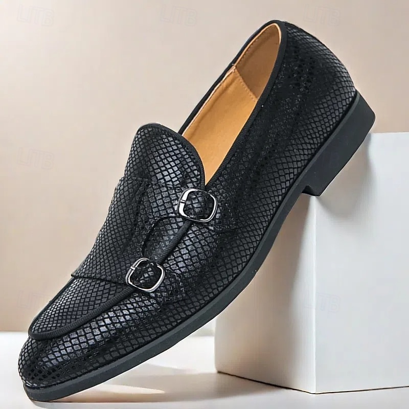 Men's Designer Loafers with Double Buckle, Textured Mesh Upper, Stylish Casual Shoes for Work and Special Occasions 1