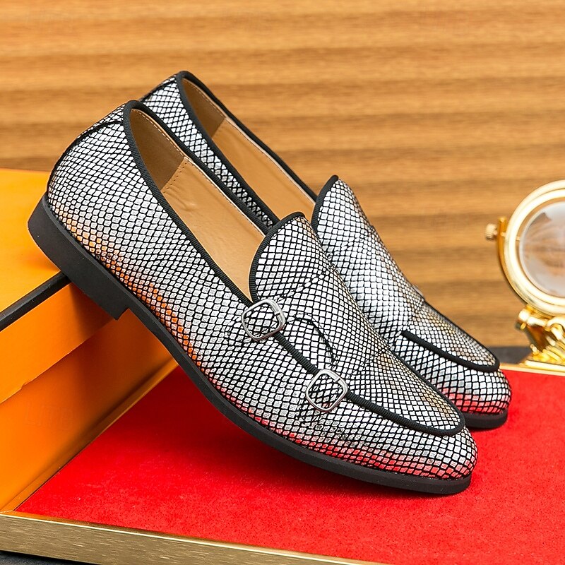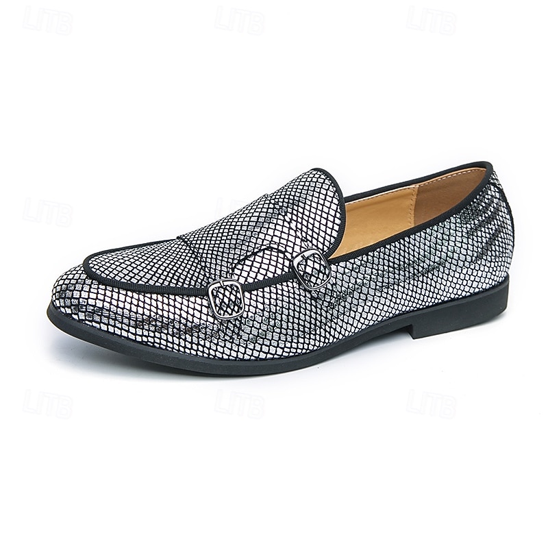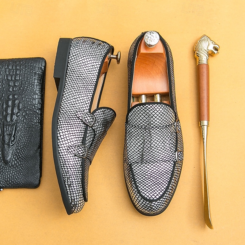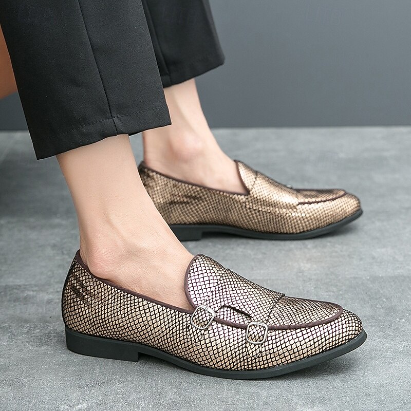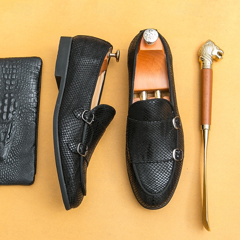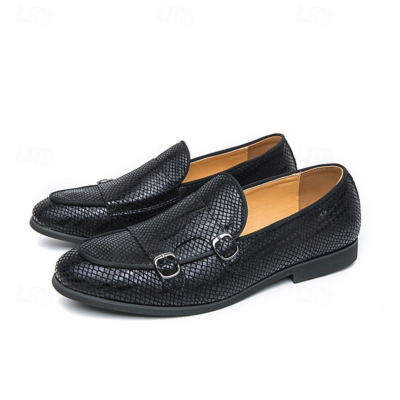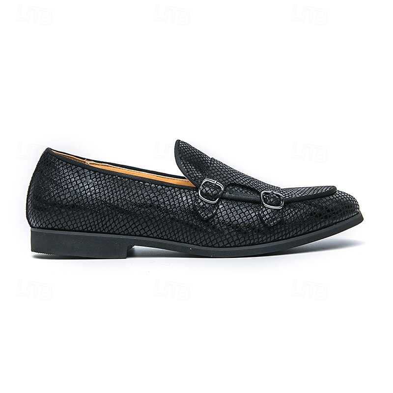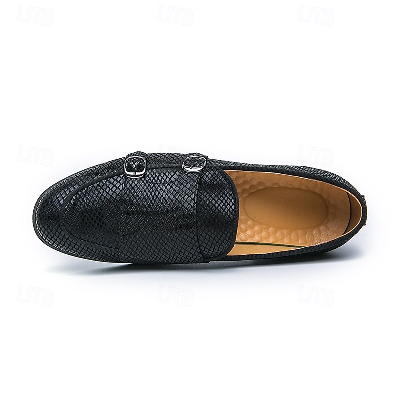 Men's Designer Loafers with Double Buckle, Textured Mesh Upper, Stylish Casual Shoes for Work and Special Occasions 1