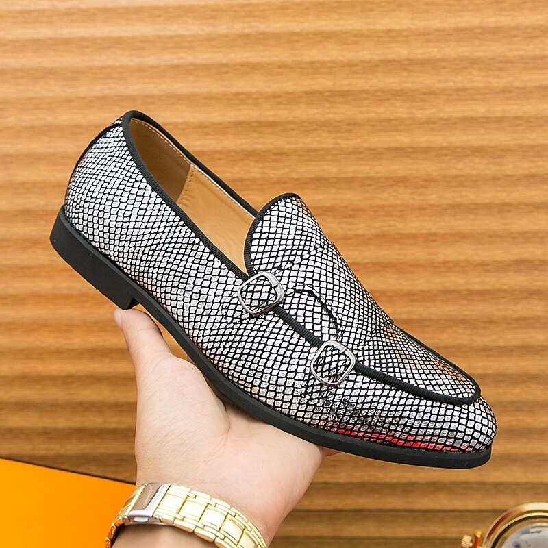 Men's Designer Loafers with Double Buckle, Textured Mesh Upper, Stylish Casual Shoes for Work and Special Occasions 7