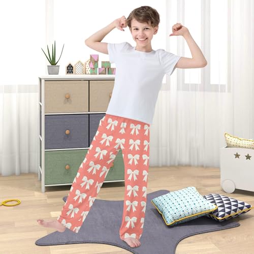Pajama Bottoms, Bows Pajamas Pant Sleep Long Pants White Lounge Wear Sleepwear Pjs 4