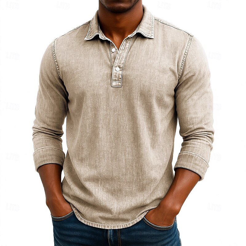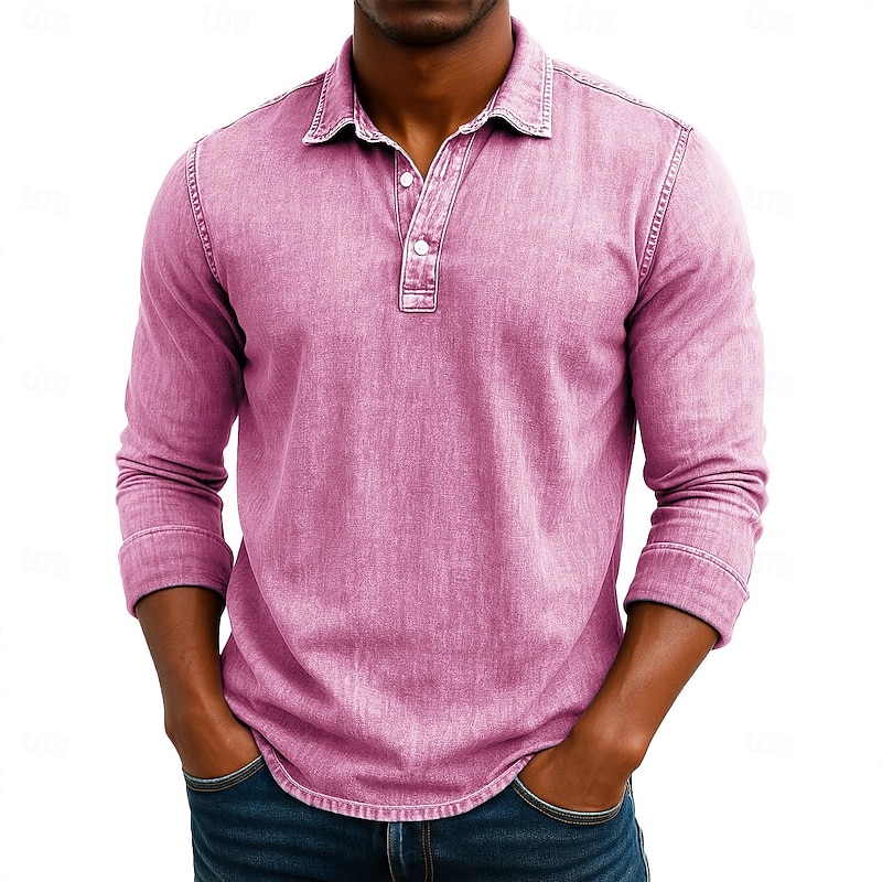 More information about Men's Polo Shirts Golf Polos Shirts Business Casual Lapel Classic Long Sleeve Vintage Solid Color Vintage Style Winter Spring & Fall All Seasons Regular Fit Black Brown Green Light Blue Purple Navy