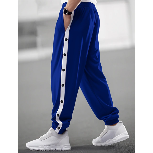 Men's Sweatpants Joggers Trousers Drawstring Elastic Waist Side Button Color Block Comfort Breathable Casual Daily Holiday Sports Fashion Black Blue 11