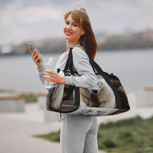 Wild Animal Hunting Fish Print Travel Duffle Bag - Foldable Personal Item Travel Bag for Women & Men,Carry-On Convertible Crossbody Tote Bags with Adjustable Shoulder Strap & Pockets 13x10.2x19.7 in 5