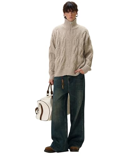 HOT ! Cable Knit Zip Up Cardigan Turtleneck Sweaters Unisex Open Front Zipper Oversized Sweater