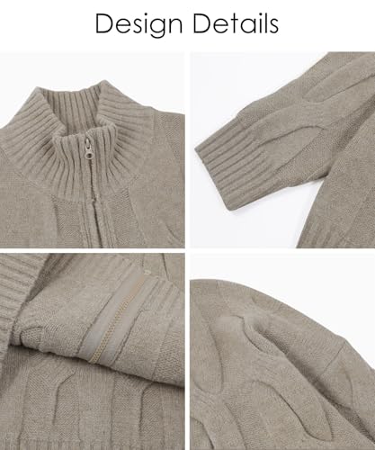Cable Knit Zip Up Cardigan Turtleneck Sweaters Unisex Open Front Zipper Oversized Sweater 6