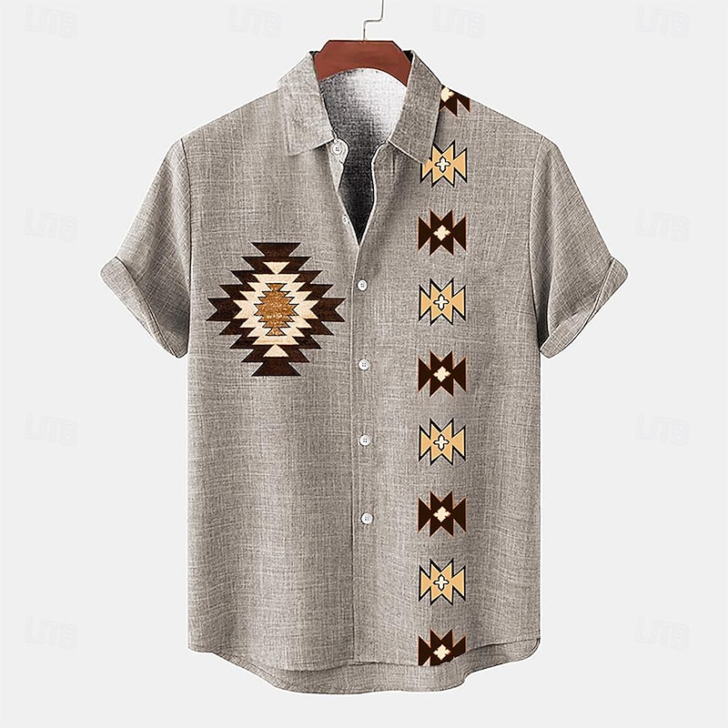 More information about Men's Shirt Linen Shirt Retro Shirts Vintage Shirt Ethnic Shirt Tribal Daily Brown Green Gray Short Sleeve Turndown Summer Spring Clothing Apparel