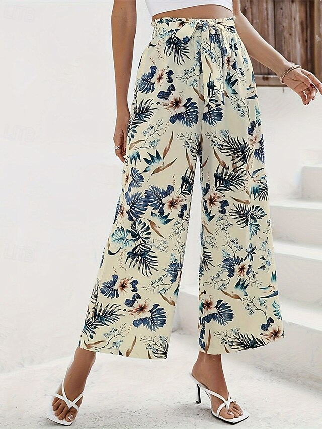 More information about Women's Wide Leg Cropped Pants Palazzo Pants Fashion Streetwear Ankle-Length High Waist Plants Elastic Waist Breathability Comfortable Street Daily Wear Going out Light Yellow Summer Spring Regular
