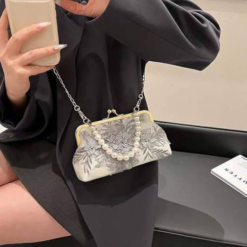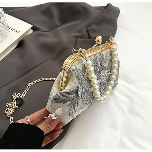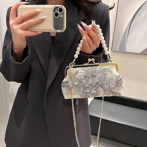 Chinese women's pearl retro handbag, embroidered chain diagonal handbag, wallet cross bag, banquet and wedding 1
