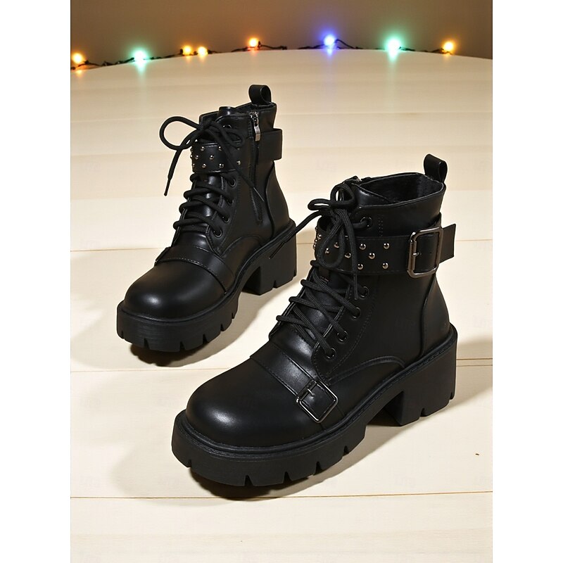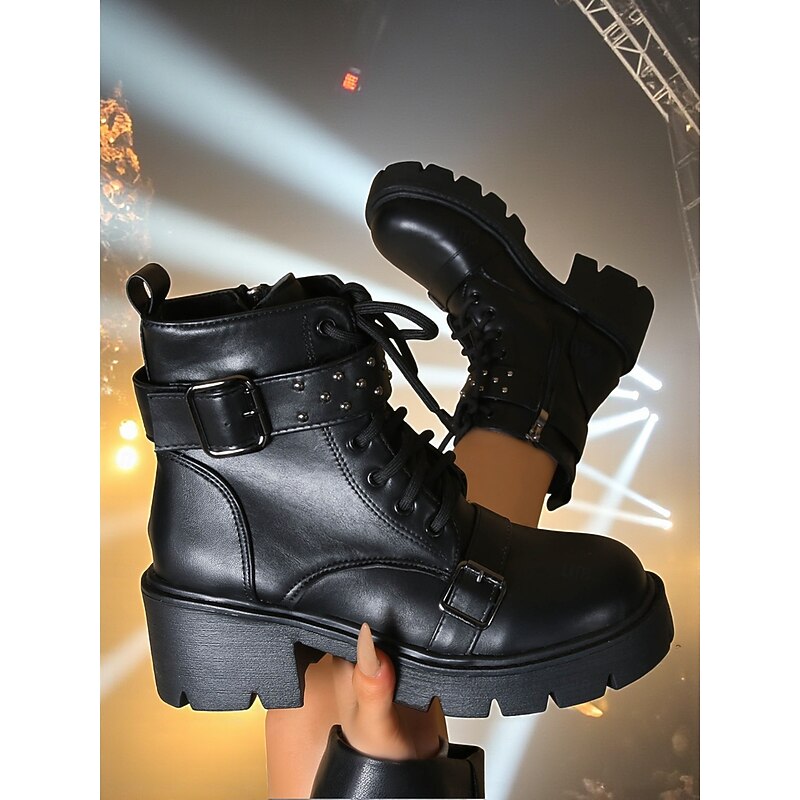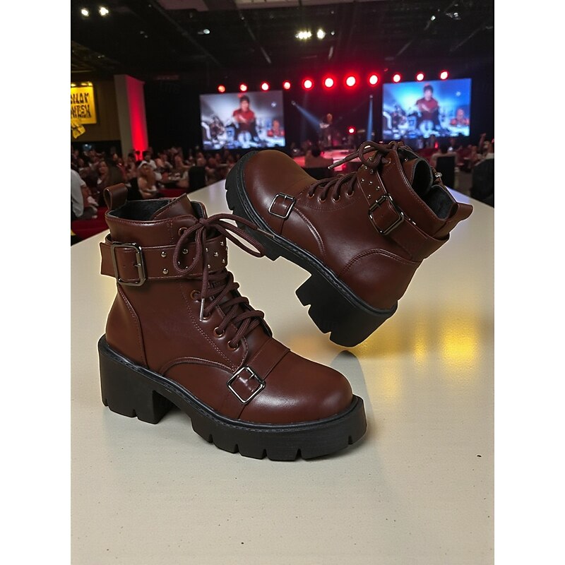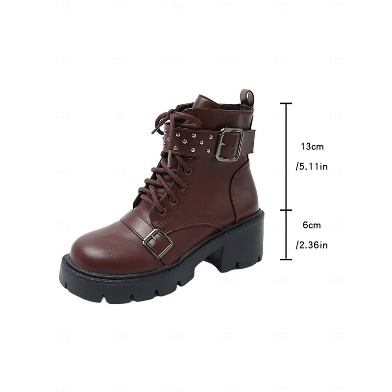 $34.99 - Women's Brown Faux Leather Platform Biker Boots with Buckle Straps, K-Pop Idol Stage Performance Chunky Heel Lace-Up Boots for Dance Shows & Streetwear Fashion 2025. Shop for cheap Biker Boots online? Buy at lightinthebox.com on sale today!