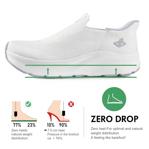 • Cushioned Thick Zero Drop Sole - Zero drop sole design. The height difference between the heel and the tip of the foot is zero, this design helps to maintain a natural gait and reduce the pressure on the knee, ankle and back caused by the height of the heel. The sole is thickened to increase stability and cushioning performance.