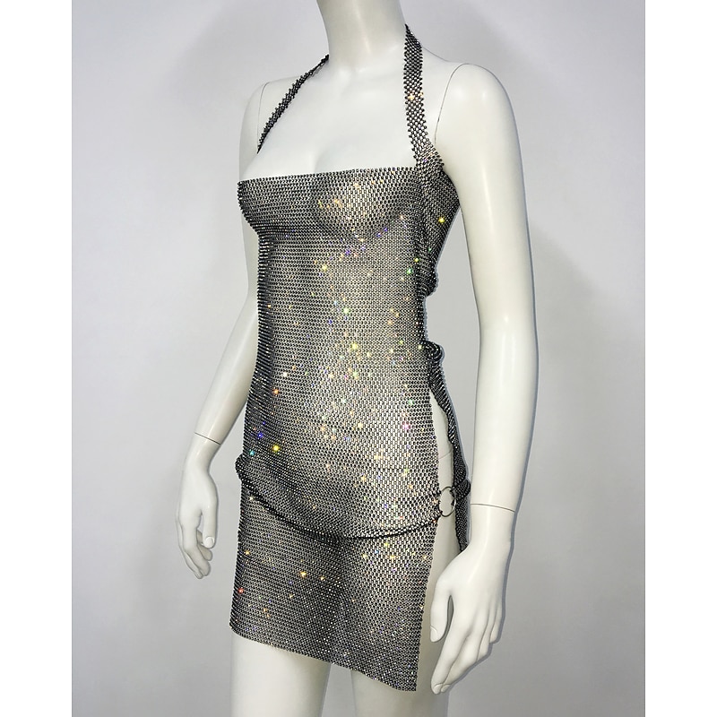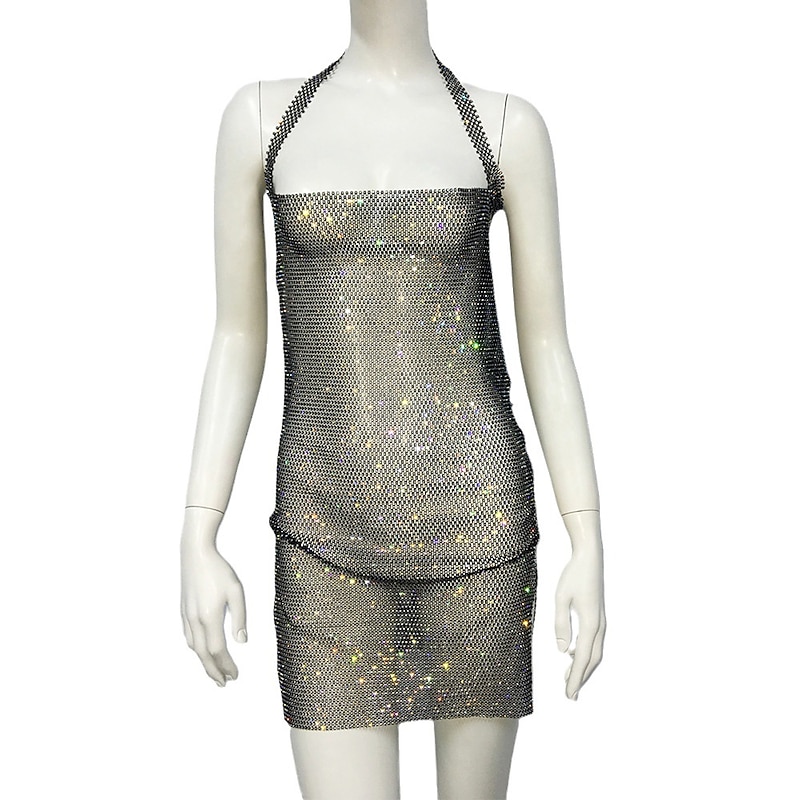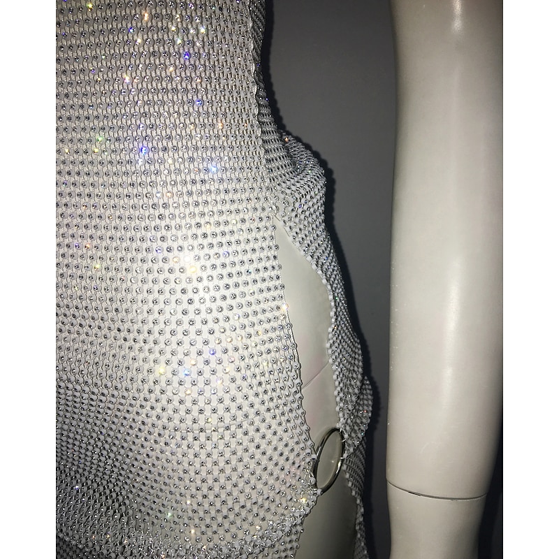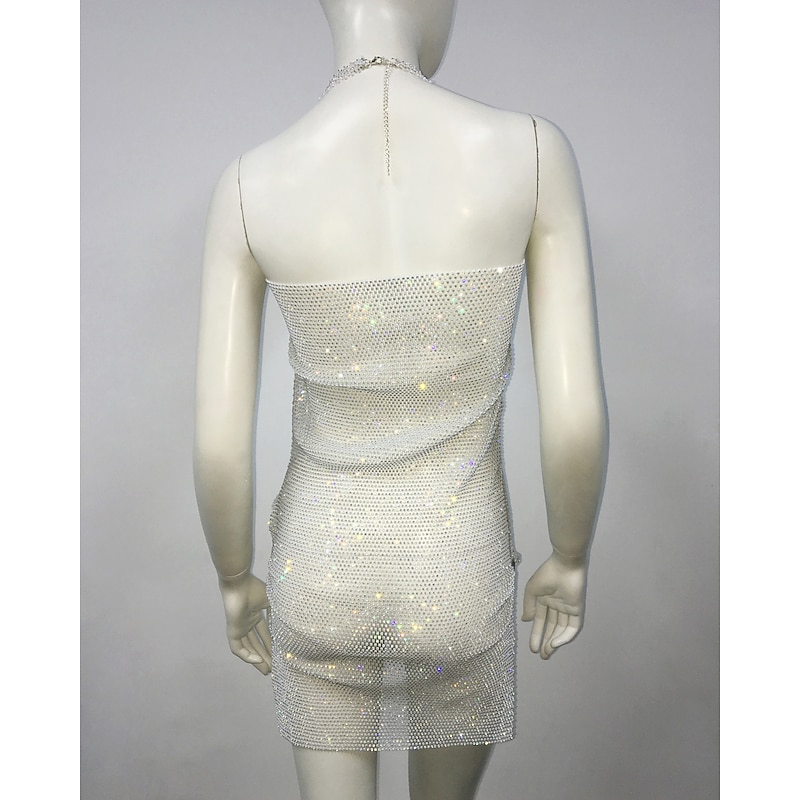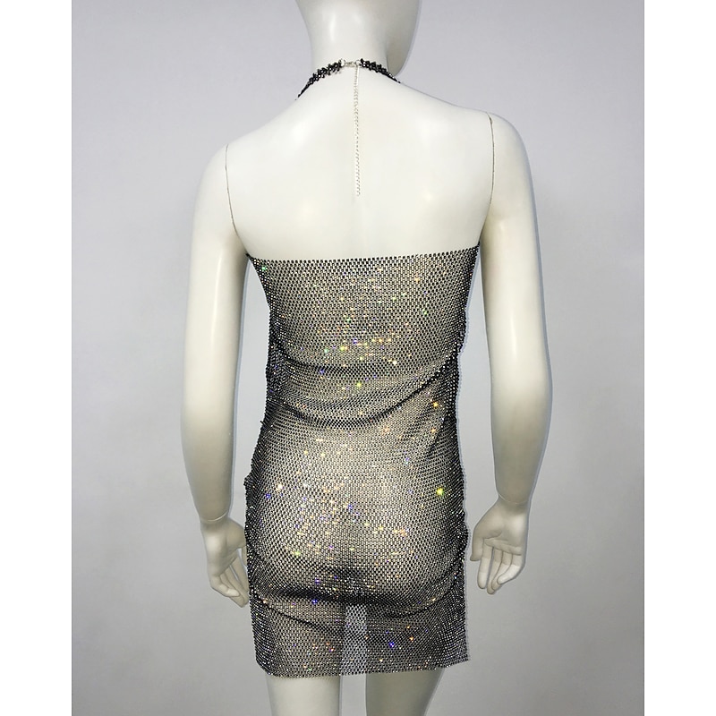 More information about Metallic Sparkle Sexy Mini Dress Sheer Mesh Rhinestone Cover Up Disco Solid Color Fancy Dress Women's Party Club Adults' Dress Summer Spring