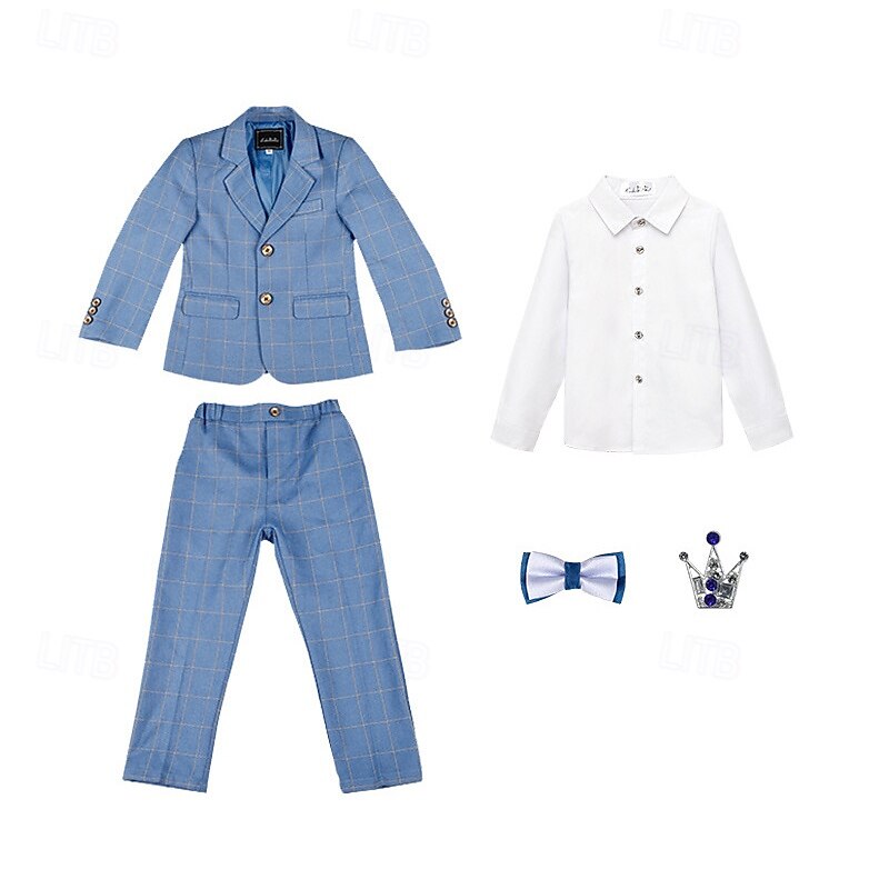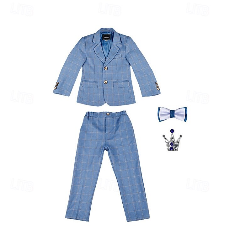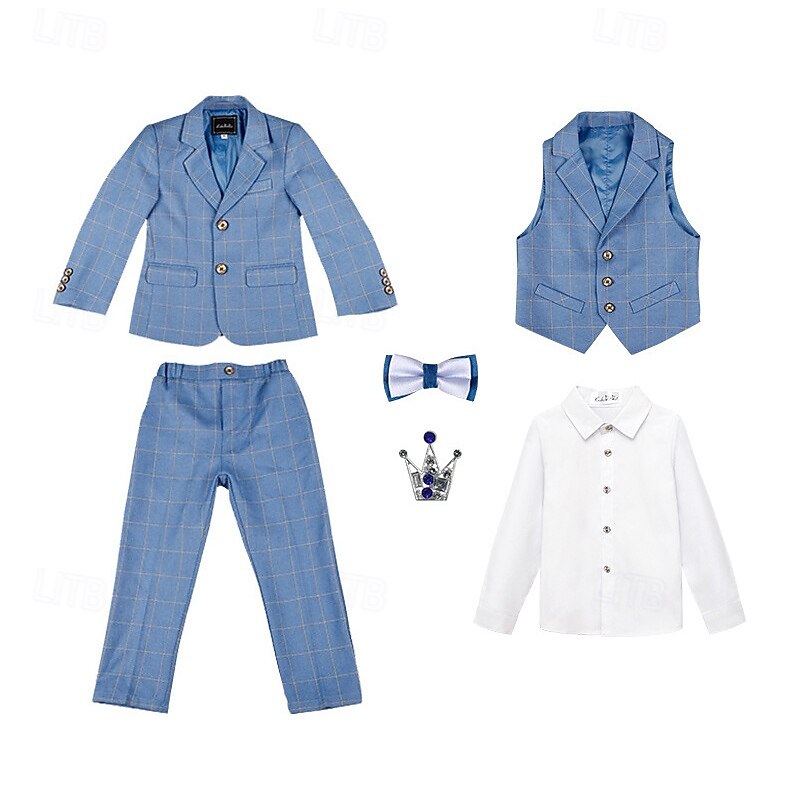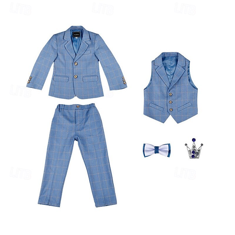 More information about 3/4/5 pieces Ring Bearer Suit Boys Kids Suit Formal Suit Blazer & Vest & Pants Formal Party Valentines Fashion Cool Plaid Pocket Blue Polyester