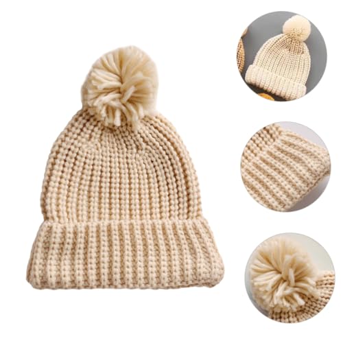 1Pc Knitted Warm Hat Thick Beanie for Boy Girl Soft Comfortable Hat Chic Candy Color Design for Autumn Photography Beige 2