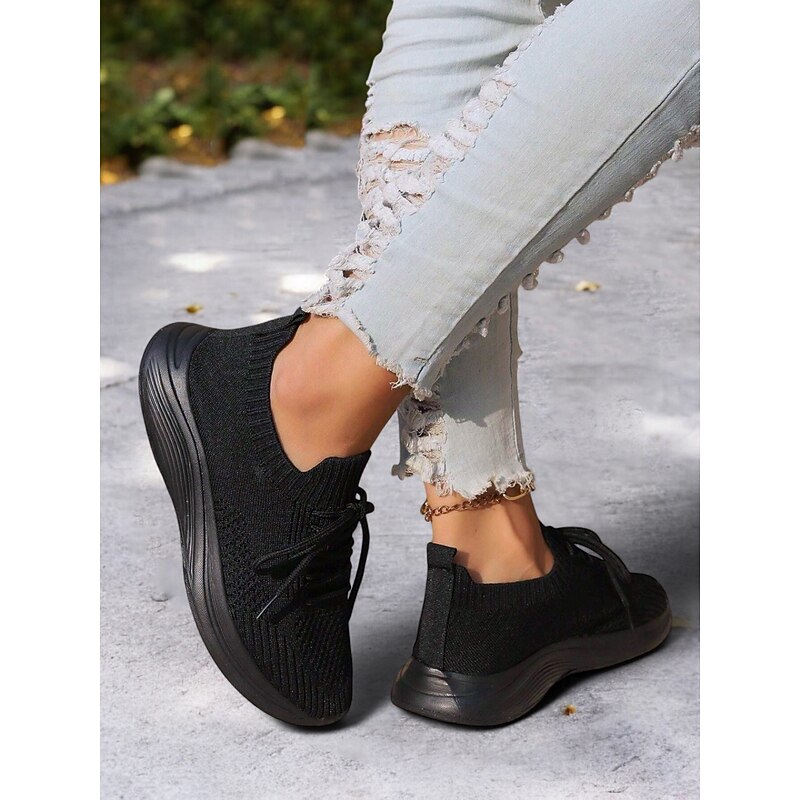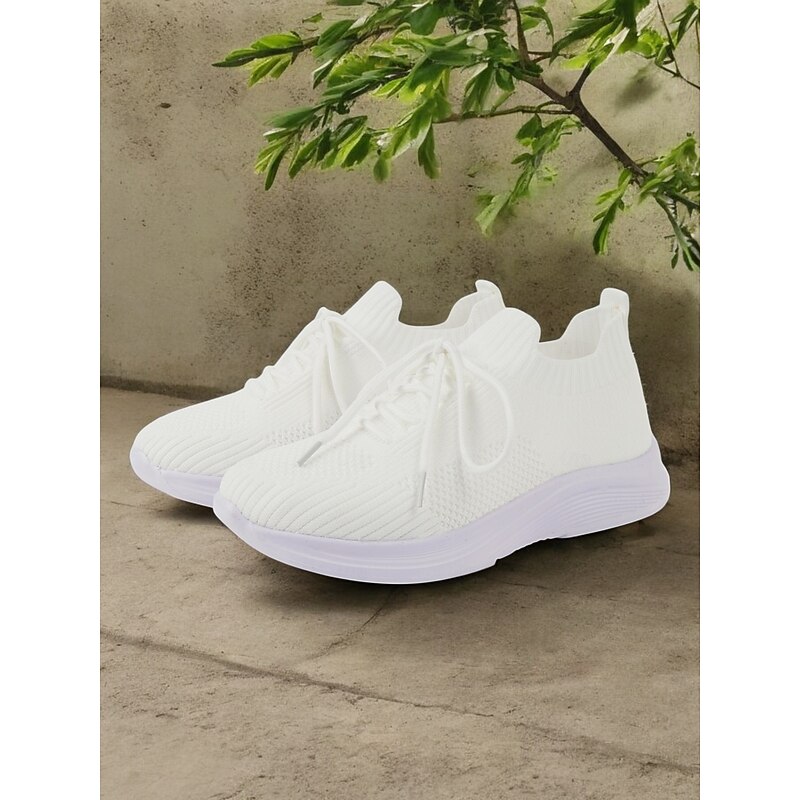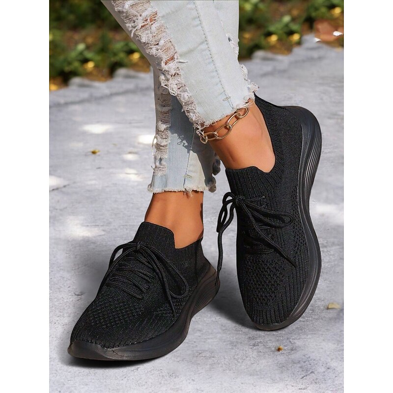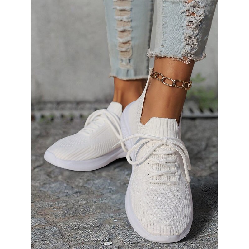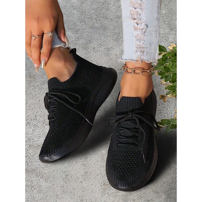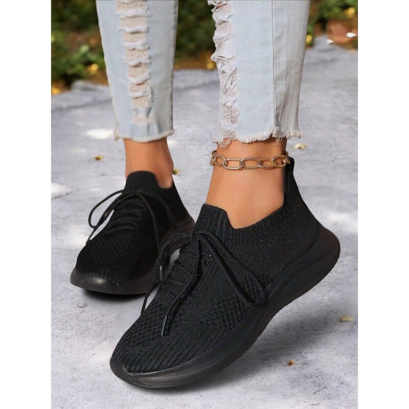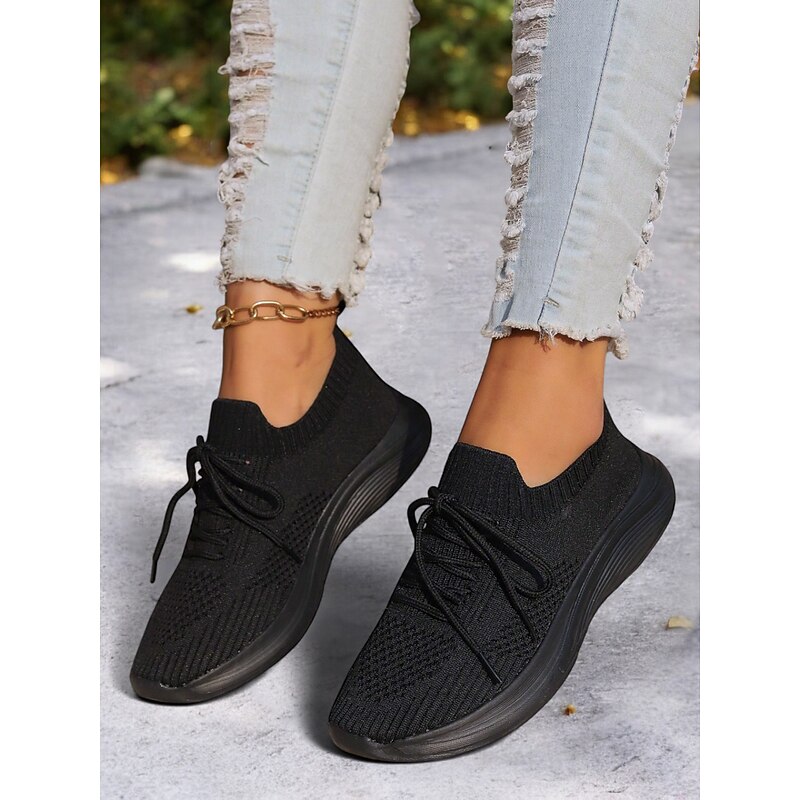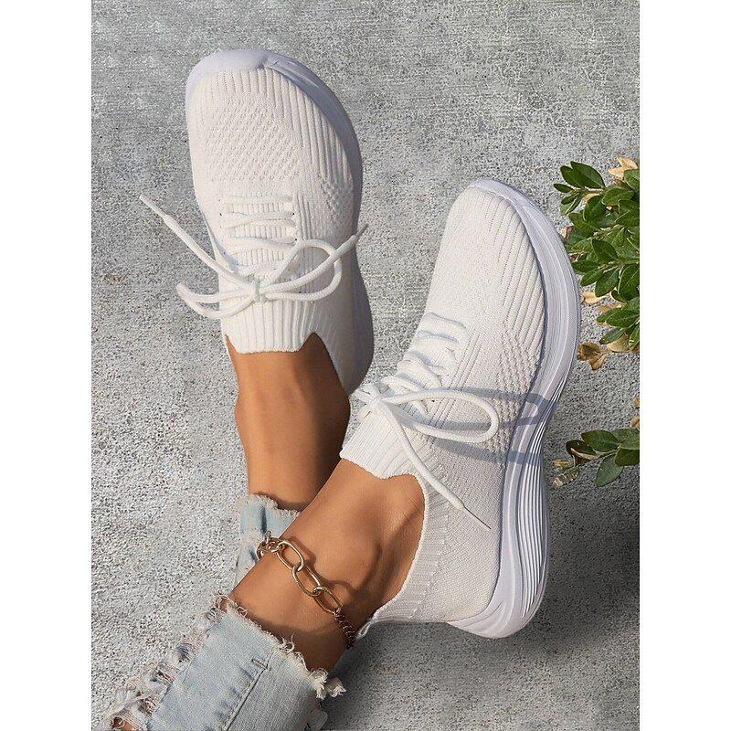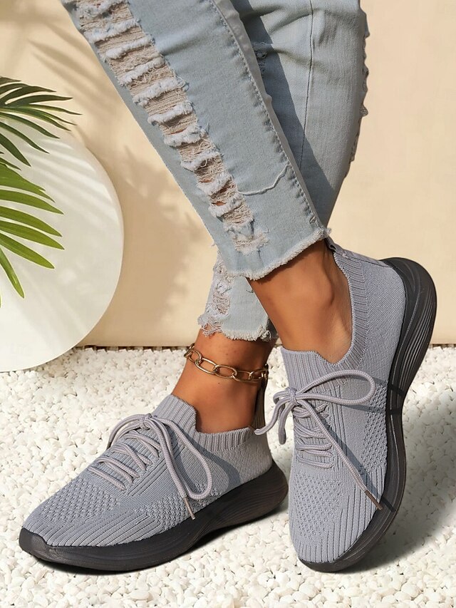 HOT ! Women's Gray Lightweight Knit Lace-Up Sneakers – Breathable Athletic Shoes for Running, Walking and Everyday Comfort