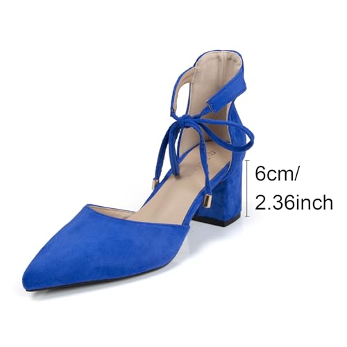 Women's Ankle Strappy Heels Pointed Closed Toe Dressy Suede Pumps with Bow Ladies Wedding Party Comfortable 2 Inch Low Chunky Block D'Orsay Heels 6