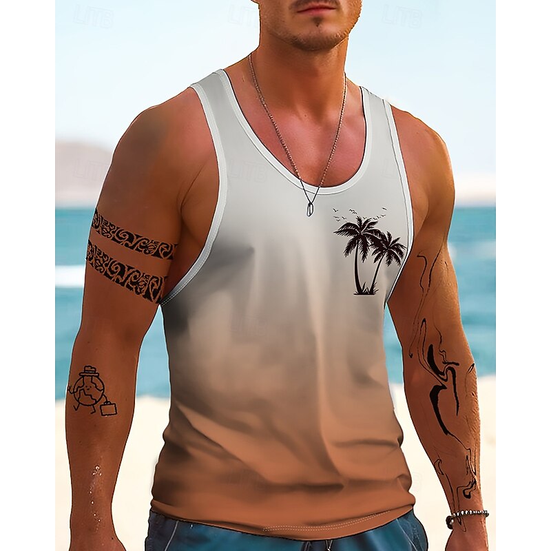 Men's Tank Top Vest Top Undershirt Sleeveless Shirt Sleeveless Crewneck Summer Gradient Fashion Designer Vacation Street Going out Dark Navy Blue Orange Top Tee for Men 5