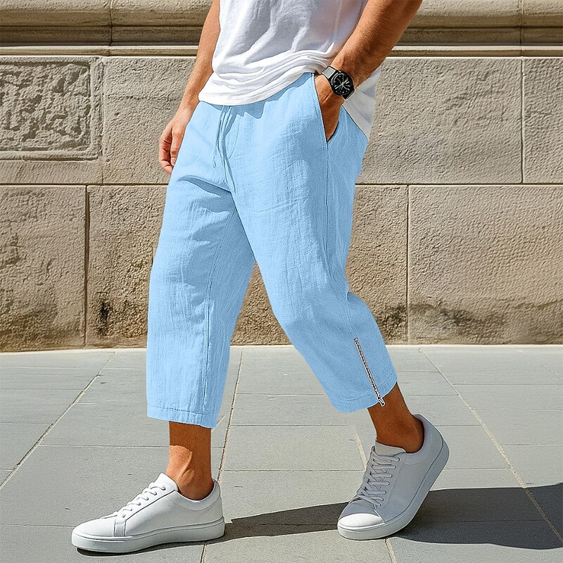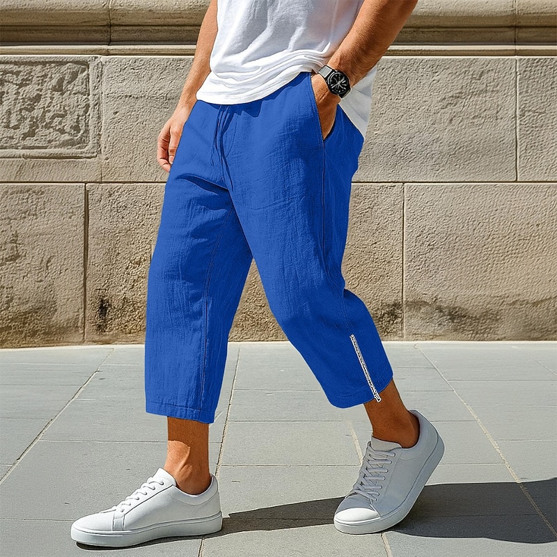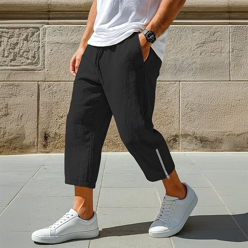 HOT ! Men's Linen Pants Trousers Summer Pants Baggy Pants Beach Pants Zipper Elastic Waist Drawstring Plain Comfort Breathable Ankle-Length Casual Daily Holiday Vacation Fashion Black White Inelastic
