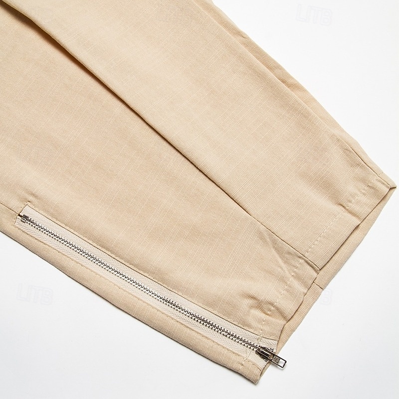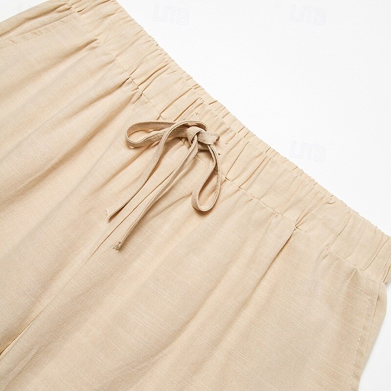 Men's Linen Pants Trousers Summer Pants Baggy Pants Beach Pants Zipper Elastic Waist Drawstring Plain Comfort Breathable Ankle-Length Casual Daily Holiday Vacation Fashion Black White Inelastic 11