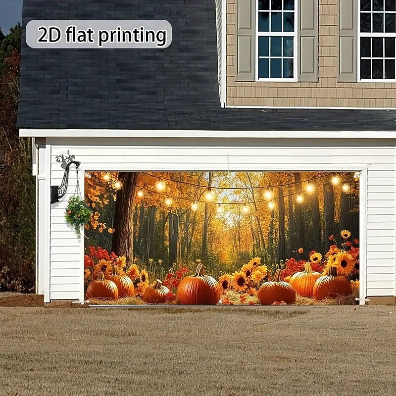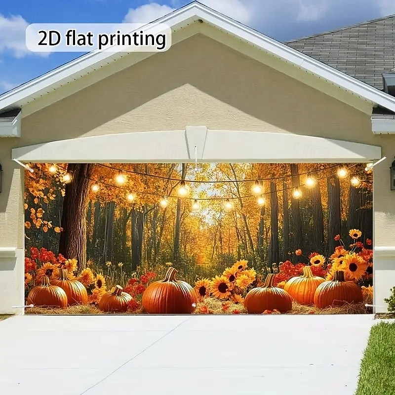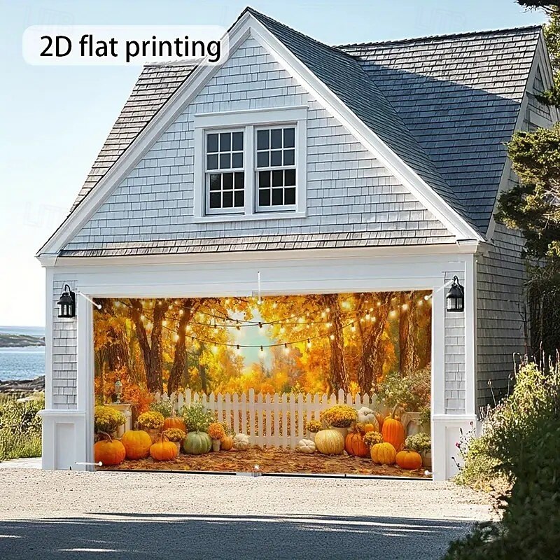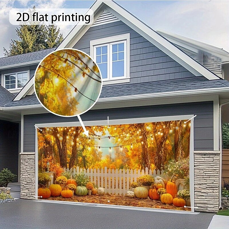 HOT ! Outdoor Garage Door Cover Fall Autunm Thanksgiving Day Banner Large Tapestry Backdrop Decoration for Holiday Outdoor Garage Door Home Wall Decorations