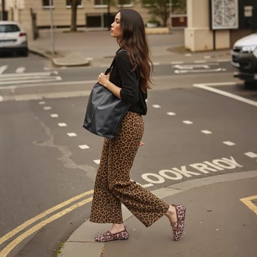 • [High Quality]:Leopard flats for women upper Material--PU,Comfortable padded insoles provide you with a comfortable all-weather experience