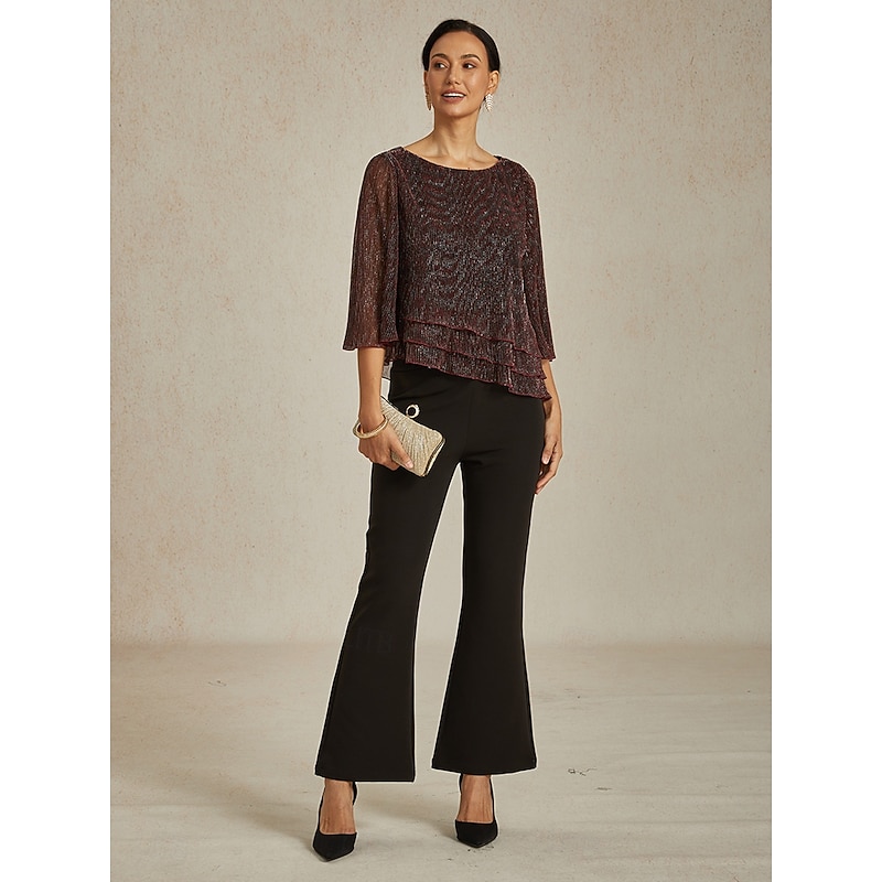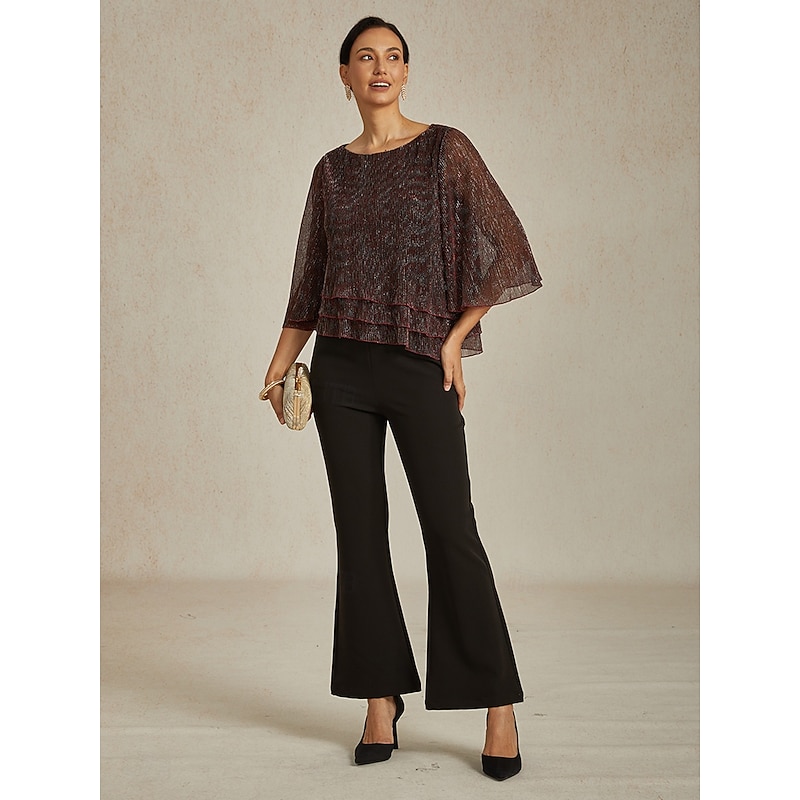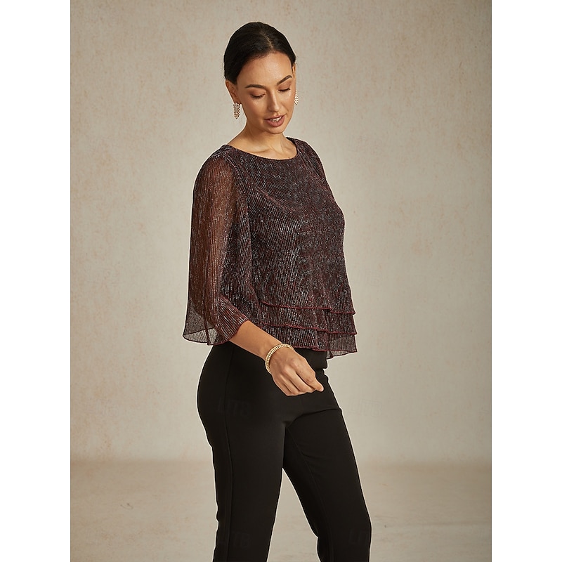 More information about Women's Blouse Dressy Tops Flowy Tops Chiffon Tops Elegant Vintage Stylish 3/4 Length Sleeve Crew Neck Boat Neck Work Daily Date Night Outfits Sequins Pleated Patchwork Wine Spring Fall