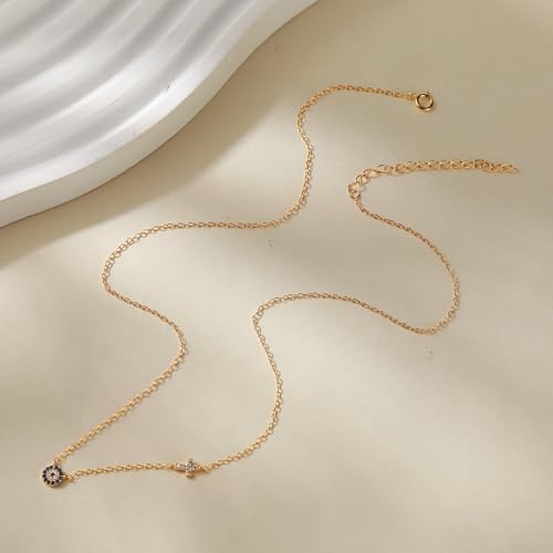 SUYACS Gold Evil Eye Necklaces for Women 925 Sterling Silver Small Cross Pendant Necklace Blue Cubic Zirconia Eye Charm Chain Christian Baptism Religious Faith Jewelry Christmas Gifts for Mom 1