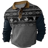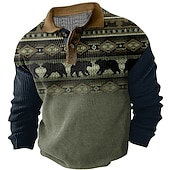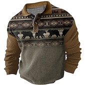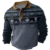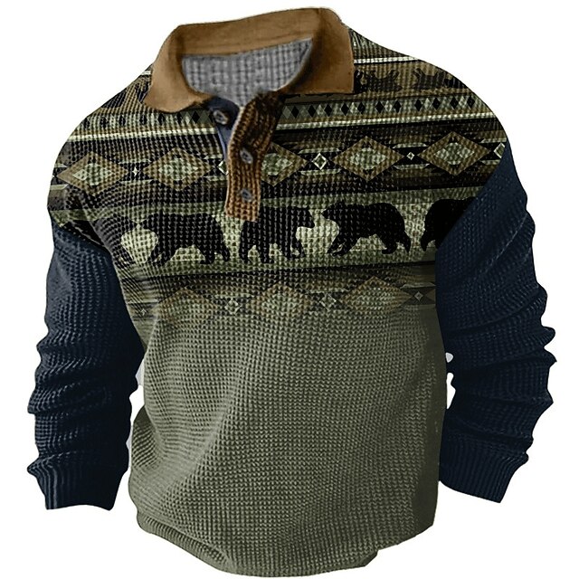 More information about Men's Western Wear Waffle Polo Shirts Golf Shirt Long Sleeve Polo Shirts Collared Shirts Vintage Casual Vacation Wear Party Outfits Buttons 3D Print Fall & Winter Dark Navy Green Khaki