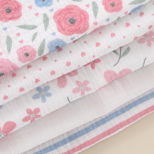 sleepyturtle 5 Pack Baby Burp Cloths, Unisex Newborn Burping Cloths, Soft and Absorbent Muslin Cotton, Large Size for Newborn, (Pink-mg) 7