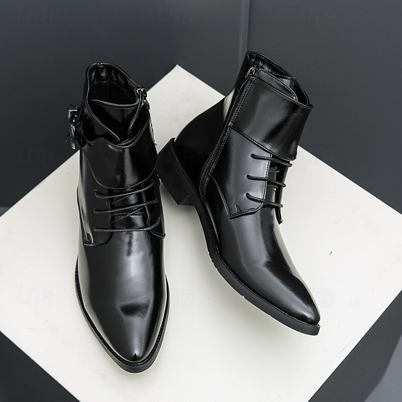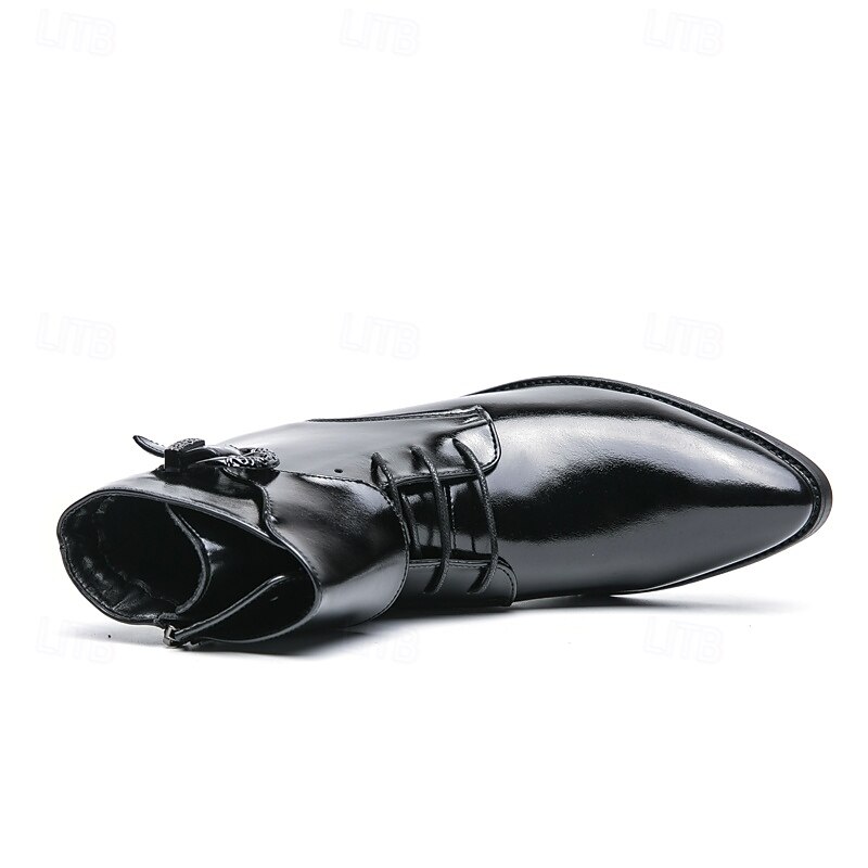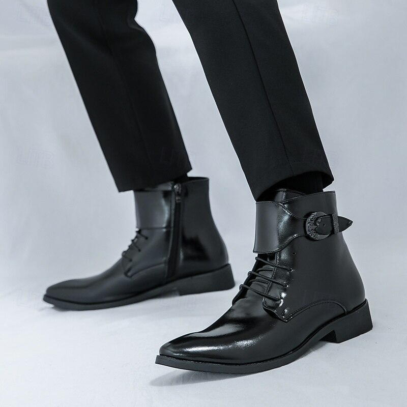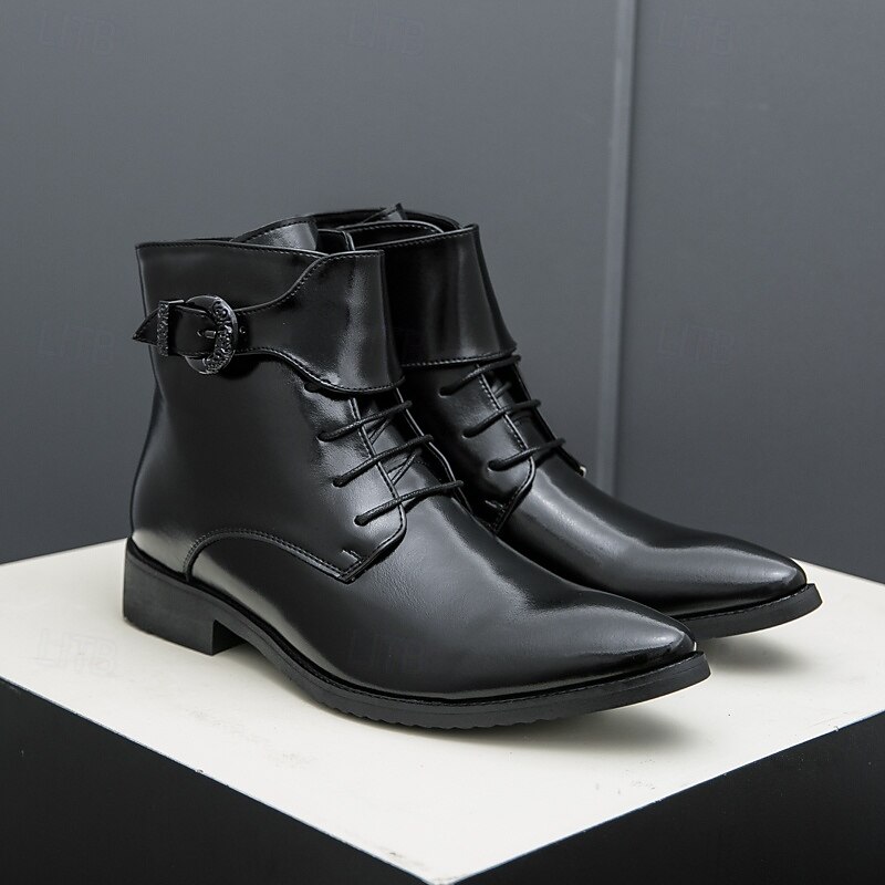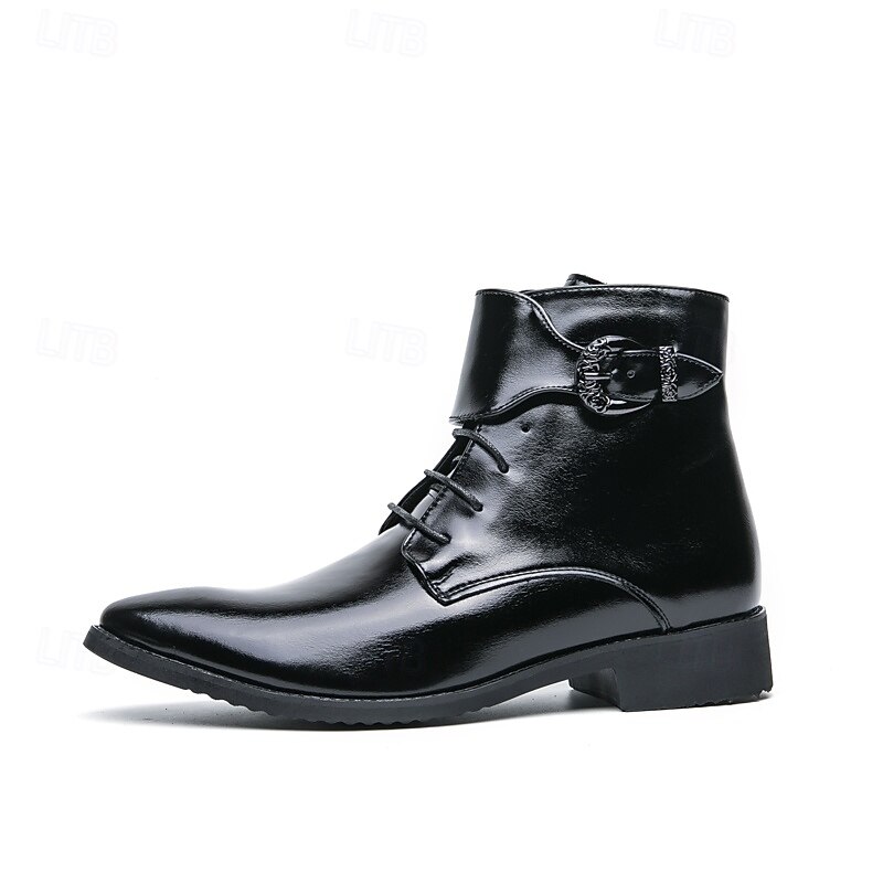 More information about Men's Brown Faux Leather Ankle Boots with Buckle and Lace-Up Design, Stylish Footwear for Business Casual, Smart Casual and Evening Events