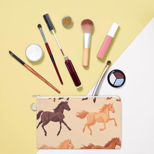 Racing Horses Horseraces Fashion Coin Purse Change Makeup Bag Canvas Pencil Pouch Travel 7