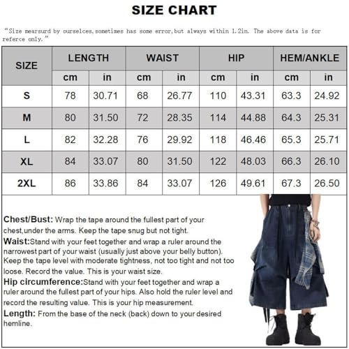 More information about High Waisted Baggy Wide Leg Flare Jeans for Women Unisex Y2K Retro Streetwear Tartan Patch Cargo Capris Pants
