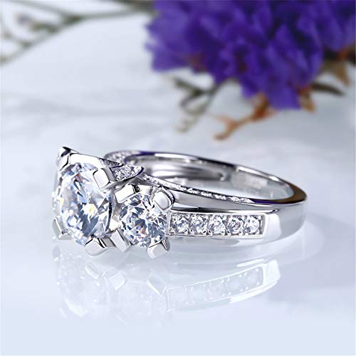 Jeulia 3 Carat Three Stone Engagement Rings for Women Round Cut Sterling Silver Wedding Rings Cubic Zirconia Pave Wedding Band Ring Set Anniversary Promise with Jewelry Gift Box 5