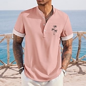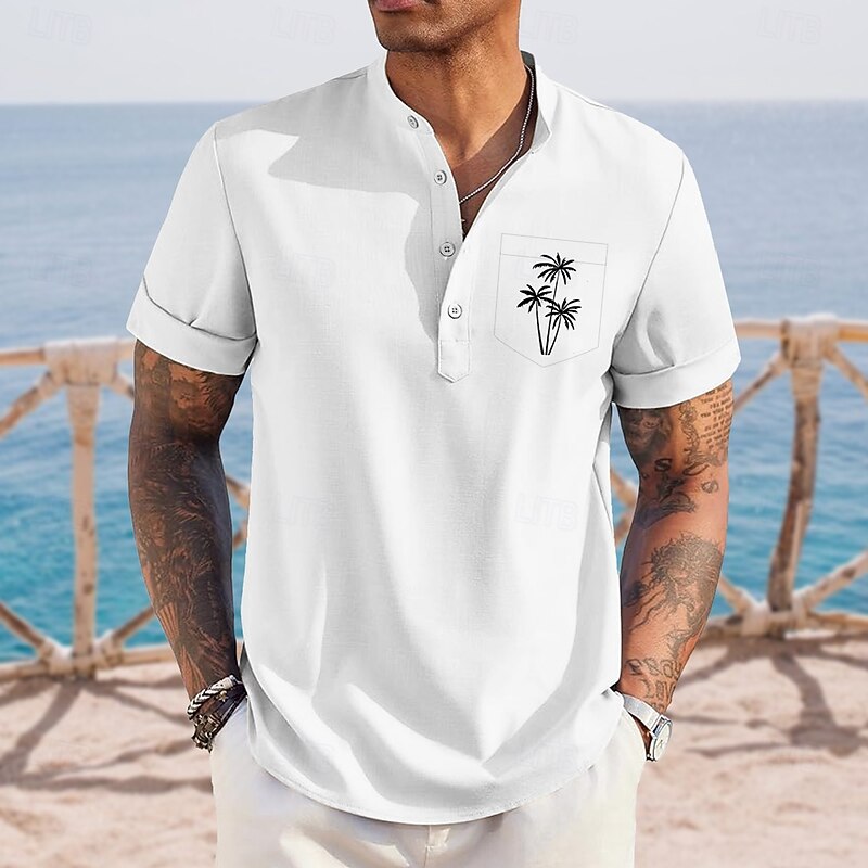 More information about Men's Coconut Tree Tropical Plants Hawaiian Shirt Henley Shirt Stand Collar Shirt Short Sleeve Hawaiian Vacation Casual Summer Spring Mandarin Collar Band Collar Buttons Front One Pocket Linen Like