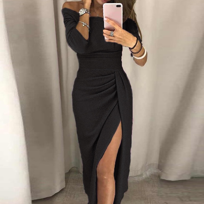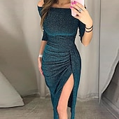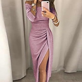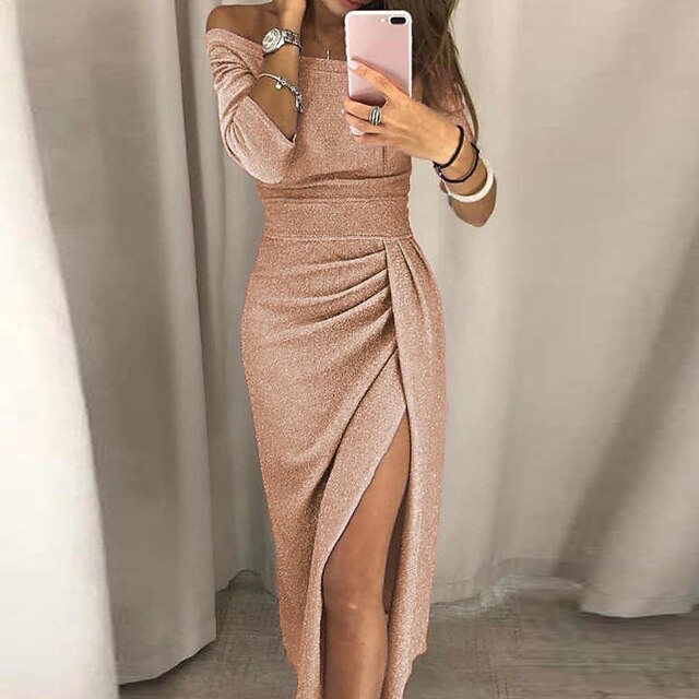 Highlights - Silhouette: Sheath / Column for a flattering fit - Hemline / Train: Ankle Length for a chic look - Embellishment: Slit for a touch of elegance - Style: Sexy and alluring - Style: Sparkle & Shine to stand out - Style: Sparkle for a glamorous touch - Occasion: Perfect for Prom or Party Wear - Neckline: Off Shoulder for a trendy look - Front page: Explore our collection of Cocktail Dresses