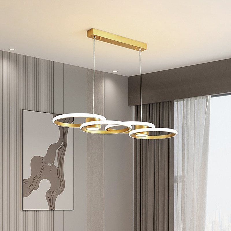 80W LED Ceiling Light Four Circle Adjustable Height Led Modern Restaurant Ceiling Light Gold and Black Suitable for Dining Room and Bedroom AC110V AC220V 3