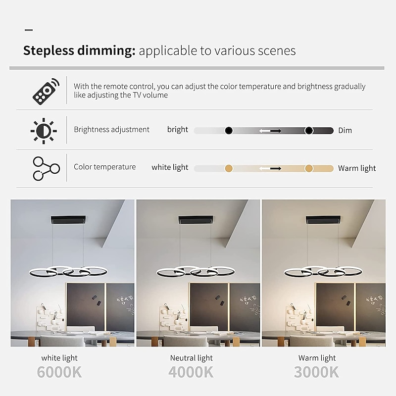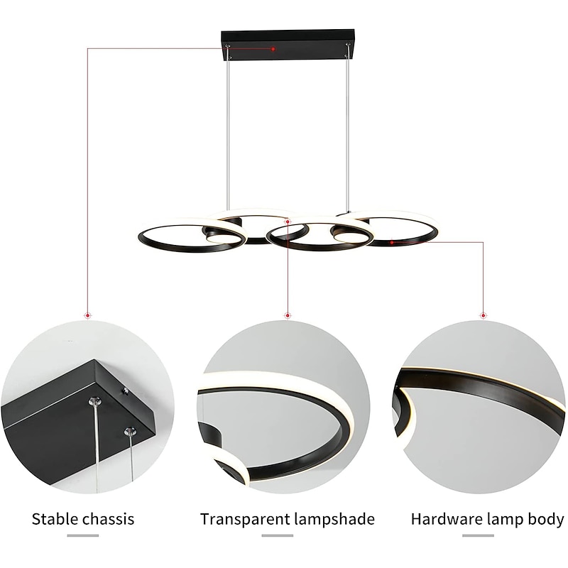 80W LED Ceiling Light Four Circle Adjustable Height Led Modern Restaurant Ceiling Light Gold and Black Suitable for Dining Room and Bedroom AC110V AC220V 11