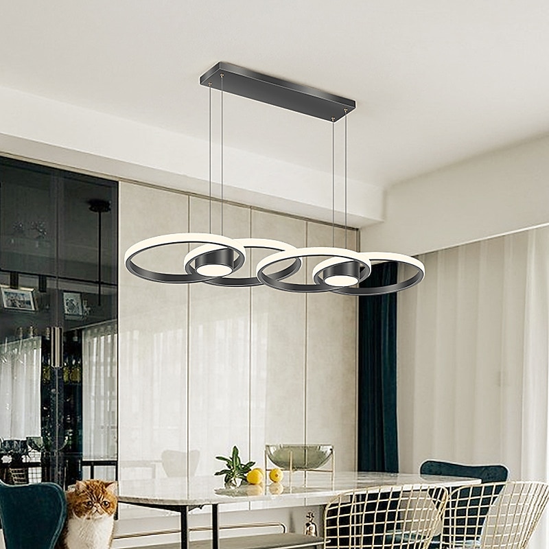 80W LED Ceiling Light Four Circle Adjustable Height Led Modern Restaurant Ceiling Light Gold and Black Suitable for Dining Room and Bedroom AC110V AC220V 10