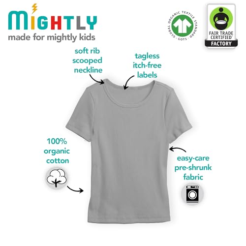 More information about Mightly Girls' Rib Scooped Neck Short Sleeve T Shirts | 100% Organic Cotton, Colorful Casual Stylish Clothes