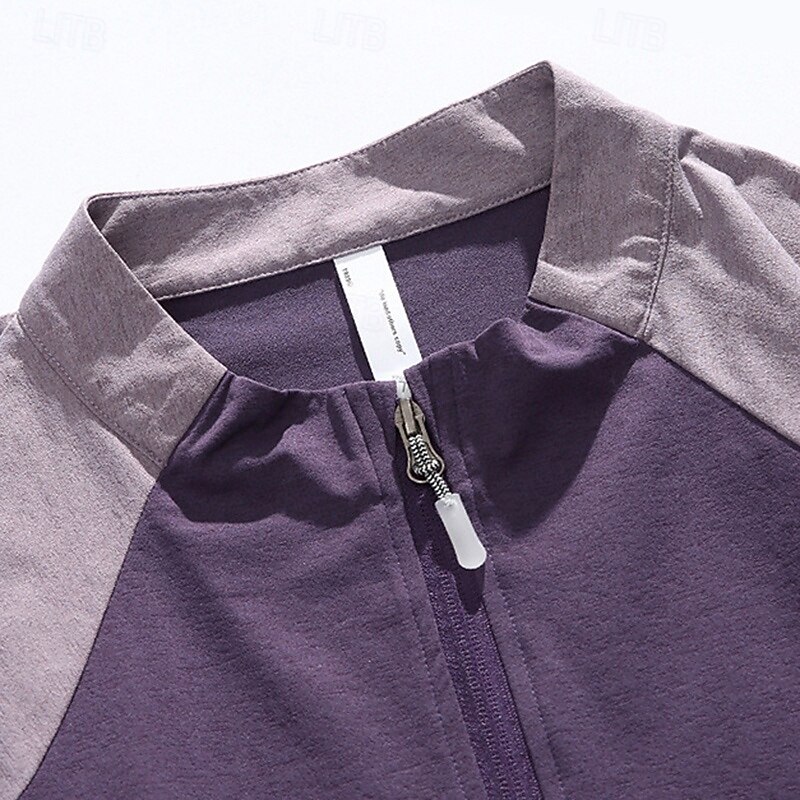 Men's Hiking Shirt Hiking top Long Sleeve Stand Collar Top Outdoor Quick Dry Sweat wicking Polyester Patchwork Dark Grey Light Grey Purple Tennis Golf Running 5