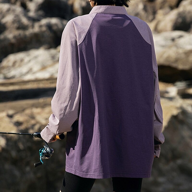 Men's Hiking Shirt Hiking top Long Sleeve Stand Collar Top Outdoor Quick Dry Sweat wicking Polyester Patchwork Dark Grey Light Grey Purple Tennis Golf Running 15