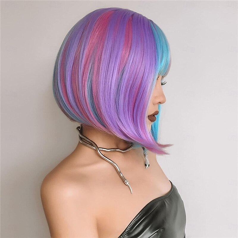 $26.99 - Short Bob Rainbow Wig with Bangs Heat Resistant Synthetic Colourful Party Wig with Fringe Pink Blue for Women Cosplay Daily Use Hair Net for Carnival 2025. Shop for cheap Carnival Wigs online? Buy at lightinthebox.com on sale today!