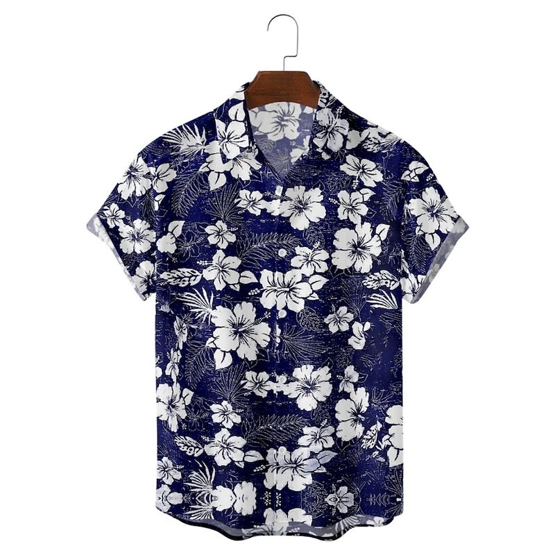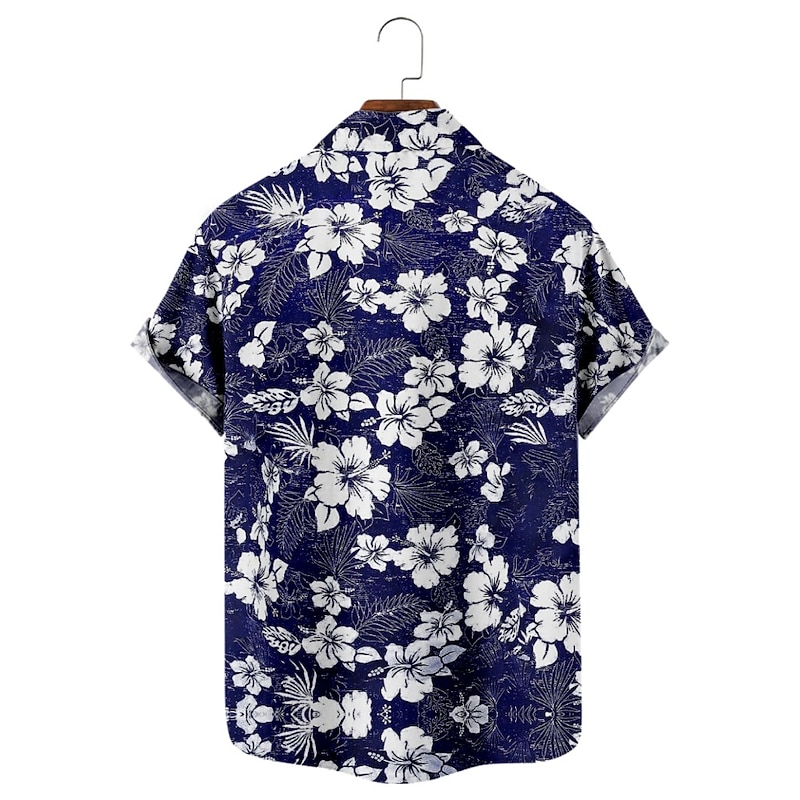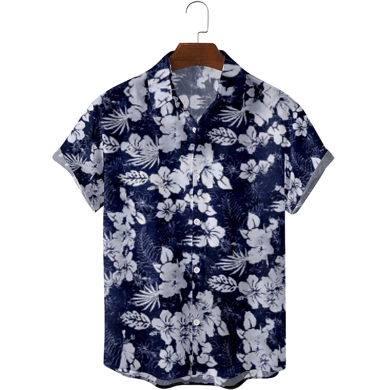 More information about Men's Floral Graphic Palm Leaf Shirt Summer Hawaiian Shirt Aloha Shirt Short Sleeve Shirt Collar Fashion Designer Lightweight Street Daily Holiday Blue and White 18 blue 19 blue S M L